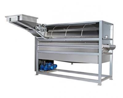 結構特征及工作原理:該機主要有對壓輥三根、進料斗、出汁斗、出皮斗、機架、傳動等部分組成。工作時接通電源,將物料倒入進料斗中,物料首先經過第一和第二根壓輥的對壓擠破,然后進入第一和第三壓輥進行榨汁,皮從出皮斗排出,汁和部分肉從出汁斗排出,從而達到榨汁的目的;該設備除傳動部位外其余均為不銹鋼制作。