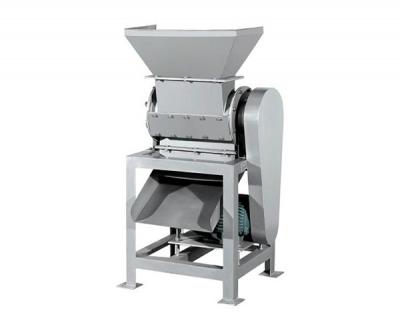 工作原理:在固定的底部刀間隙內,飛刀繞自己的軸旋轉,使果蔬破碎。在轉子上有四組飛刀底部刀作為一組。根據水果和蔬菜的種類,有料斗和管狀兩種類型。在料斗上部加入緩沖裝置,可獲得粒度較細的物料。